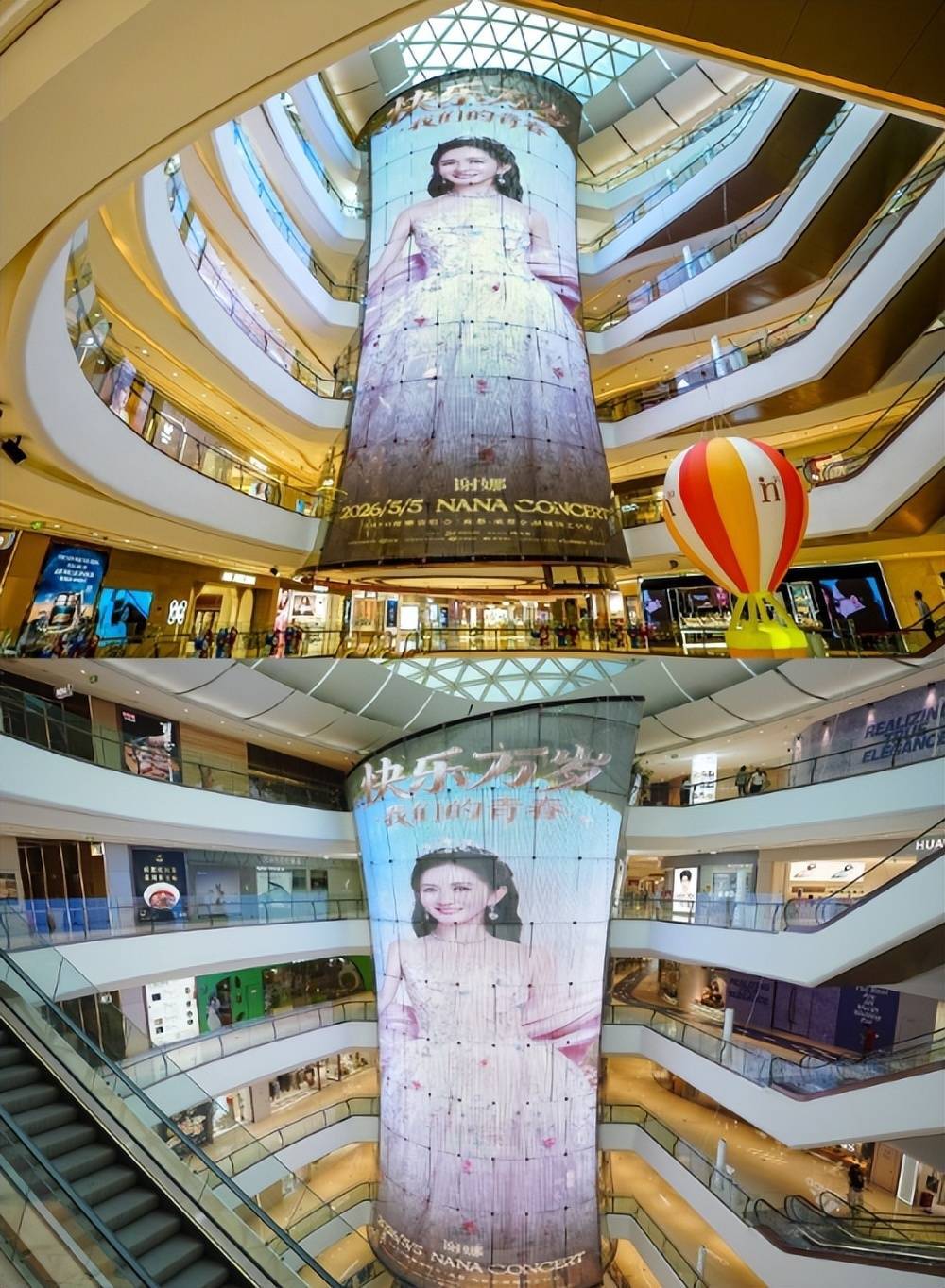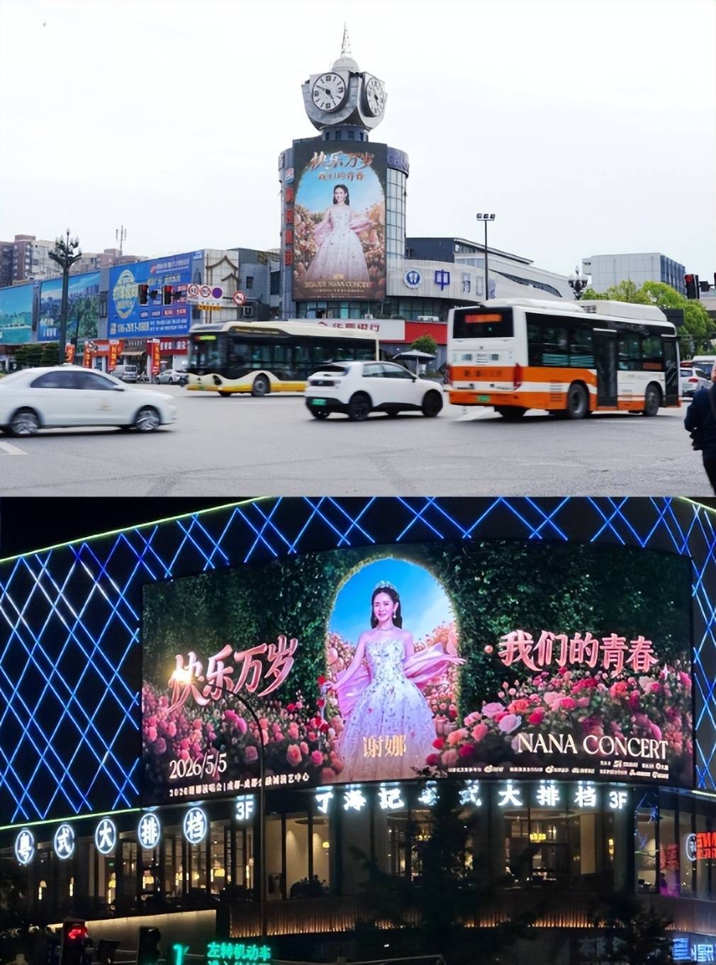 从户外大屏、应援公交车到各大商场里的广告牌,全都是关于谢娜的演唱会宣传消息。