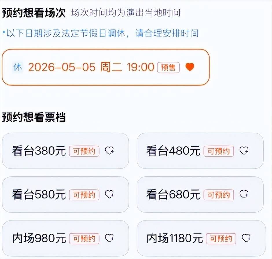 看台区380元至680元、内场区980元至1180元。